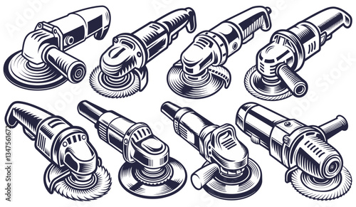 Circular Saw Blade Tool Silhouette Vector Set vector illustration