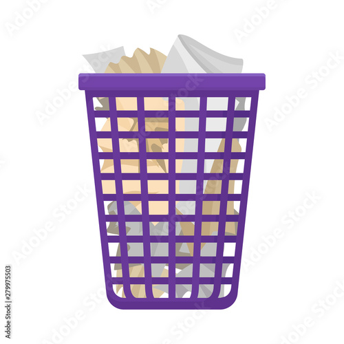 Trash dumpster for paper waste suitable for recycling. Paper recycle, segregate waste, sorting garbage, eco friendly, concept. Blue container. White background. Vector illustration, flat style.