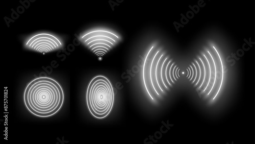 Wifi and Radar Icon Set. Wireless wi-fi and Sonar Sound Waves, Signal Concentric Circles, Wave and Echo Sounding Symbols. Vector Illustration
