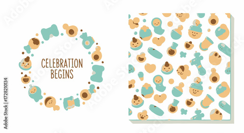 Adorable baby shower graphics with cute characters perfect for invitations, announcements, and joyful celebrations