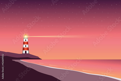 mountain night sky with crescent moon and stars. iceberg and sea abstract Illustration art vector