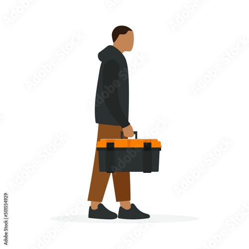 Male character with a flashlight on in his hand stands on a white background