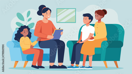 A the conducting a family therapy session working to repair and improve relationships strained by the challenges of BPD symptoms.. Vector illustration