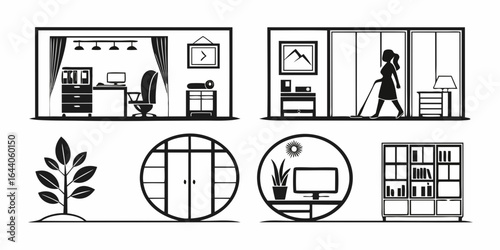 Set Condom, Silicone ball gag with belt, Monitor with 18 plus content and Condom safe sex icon. Vector.