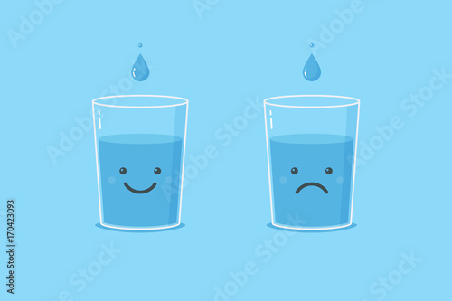 Water glass with happy and sad face vector illustration in flat style