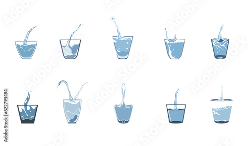 Water glass splash icons illustration flat design