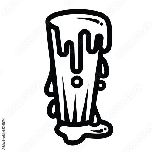 Overflowing water in glass cup icon illustration with black outline isolated on square white background. Simple flat cartoon art styled object drawing for coloring book or web designs.
