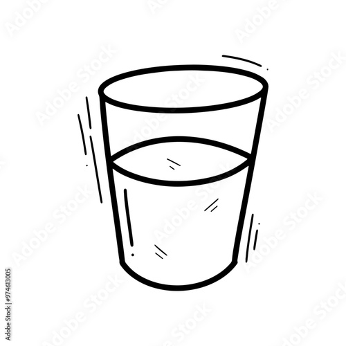 Glass of Water with Shadow in Elegant Black and White Outline Line Art Drawing