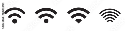 Wifi icons set. Mobile wireless signal strength indicator. Internet connection symbol icons. Different levels of Wi Fi signal. Vector illustration isolated on white background.