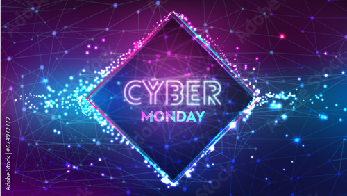 Cyber Monday sale banner with neon color and speed light