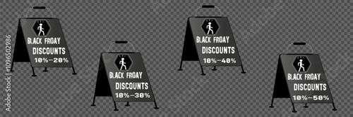 Black friday event sale banner. Vector layout on transparent and black background