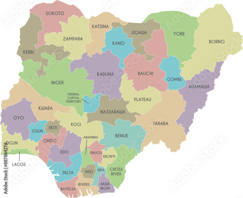 Colorful political map World continents.