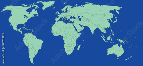 Simple world map vector illustration, flat style, isolated on white background, country outlines, continents, world map design, global map, geographic map, flat world map.