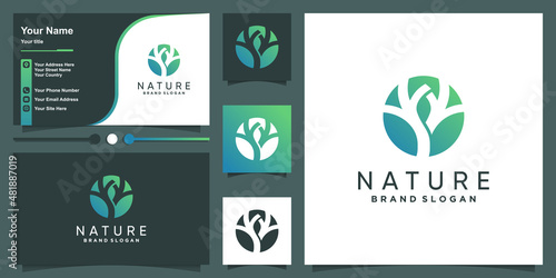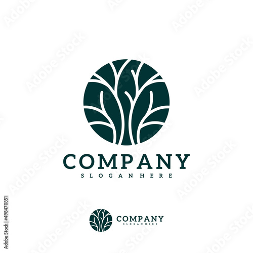Tree logo design. Nature icon brand label. Spring garden sign. Wild forest plant symbol. Vector illustration.