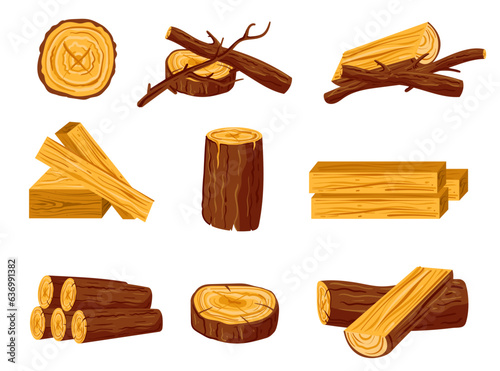 Wood forest log pile tree trunk timber lumber isolated on white background set. Vector graphic design element illustration
