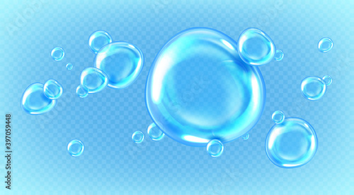 Set of Vector Soap Water Bubbles. Transparent Isolated Realistic Design Elements. Can be used with any Background.