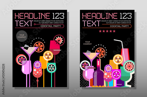 Modern flat summer cocktails collection. Colorful background with cocktail glasses. Celebration poster concept and web banner.