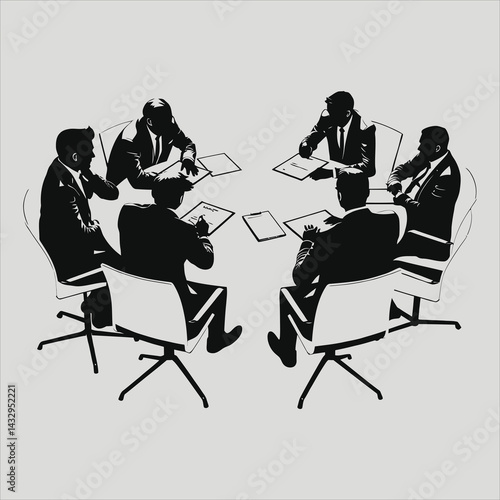 Silhouette vector illustration of businesspeople having a meeting or conference sitting around a table