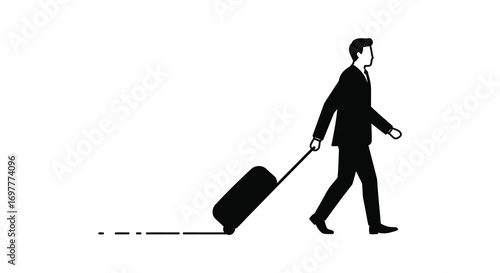 Business walking silhouette, professional figure motion, black shape on white background, commuting posture study, briefcase gesture illustration, urban activity
