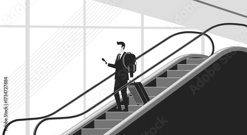 Expressive monochrome illustration depicting a businessman on an