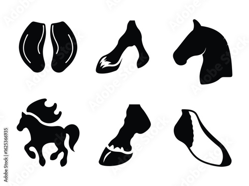 Horse Hoof Print and Shoe Silhouettes Set