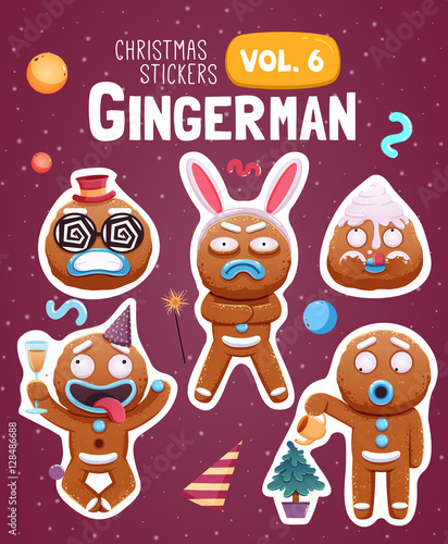 Christmas gingerbread man cookie vector characters set isolated on white background.