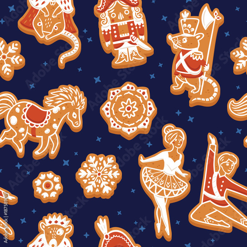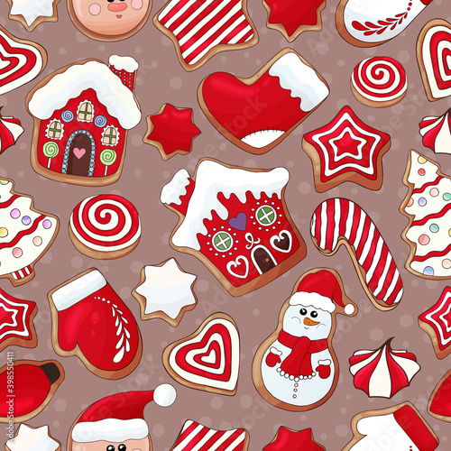 Christmas gingerbread cookies seamless pattern. Vector illustration