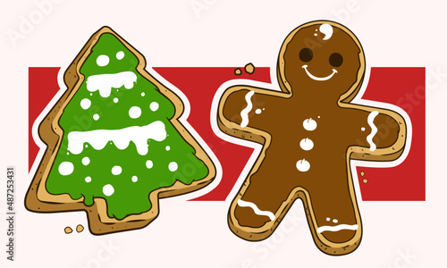 christmas gingerbread cookies for new year's holiday celebration vector illustration