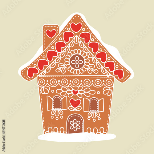 Vector illustration of an ornately decorated gingerbread house.