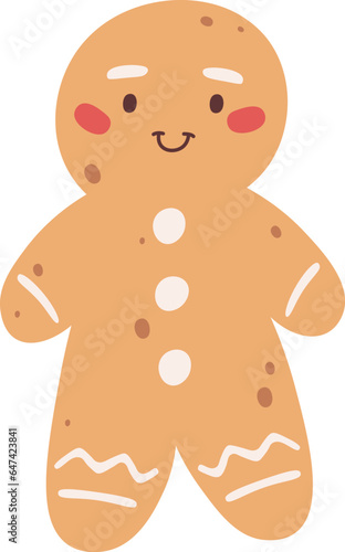 Christmas gingerbread man cookie. Ginger bread man with white icing decoration. Vector cartoon illustration in flat style. Christmas and New Year vector icon. Xmas symbol