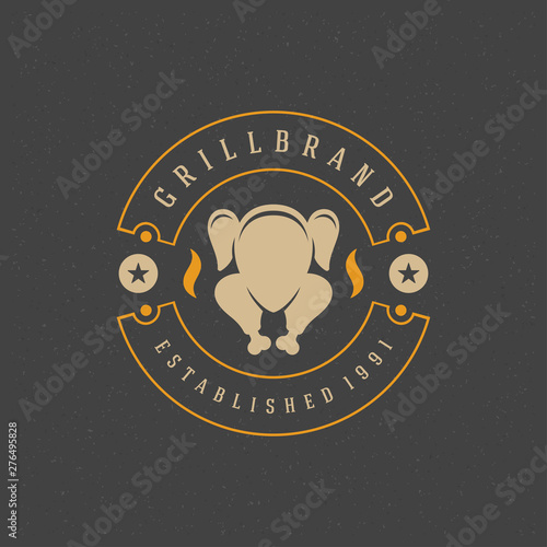 Grill restaurant logo vector illustration barbecue steak house menu emblem, chicken symbol.