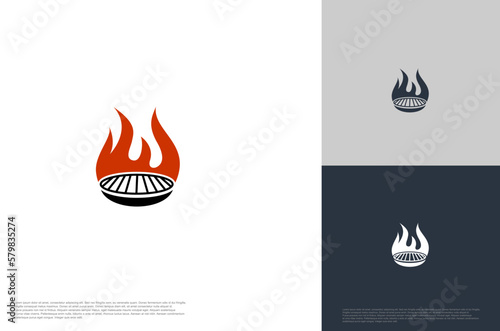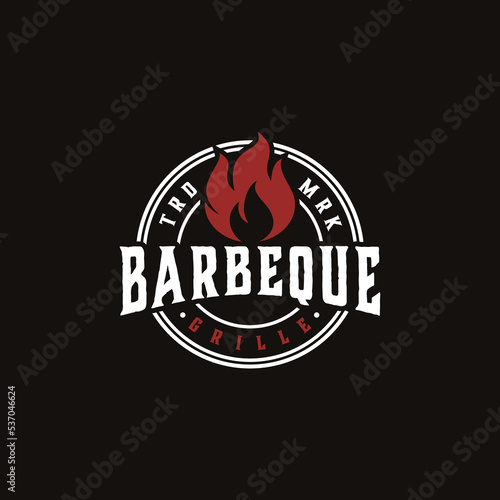 barbecue grilled vector logo template. BBQ, grill food and restaurant icon with fire icon