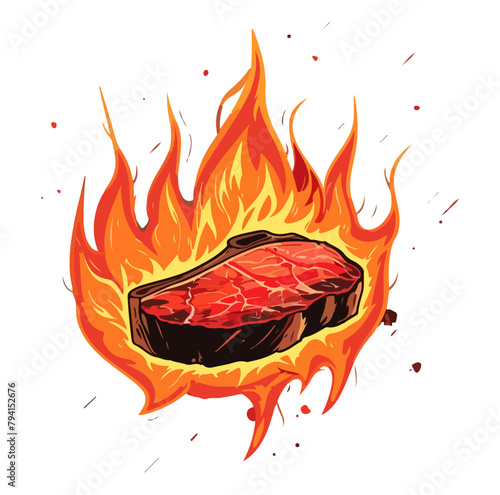 barbecue fire vector template. bbq grill steak graphic illustration in badge emblem patch style.