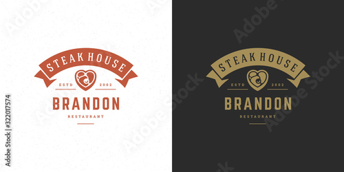 Retro vintage steak house Logo Design. Logo for business, restaurant, label, badge. With quality meat.