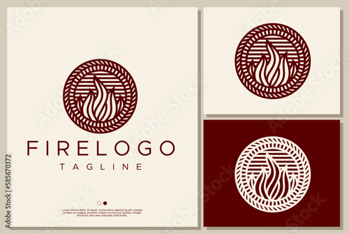 Design wood and fire, logo campfire bonfire vector camping adventure vintage illustration