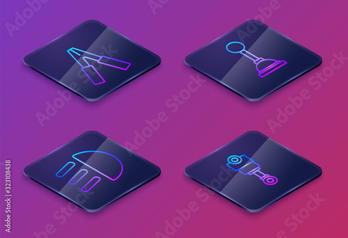 Set Helmet and action camera, Ski goggles, Parachute and Bicycle icon. Vector