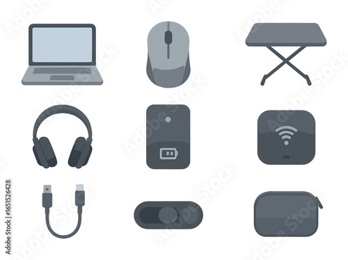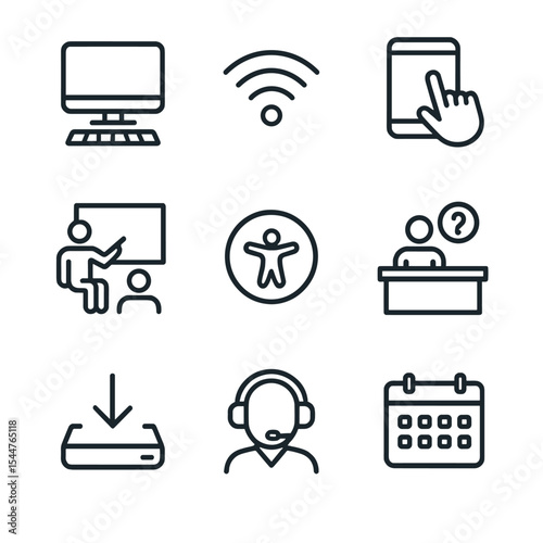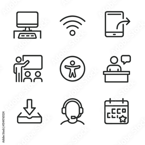 Setup icon desk icons mic café hotspot coworking group vector collection outdoor