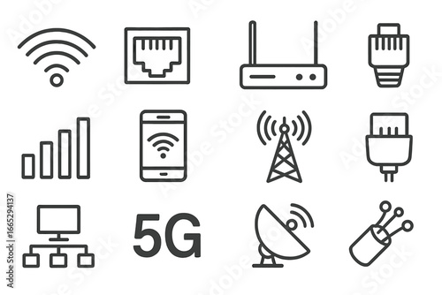 Wireless communication icons set – outline, line, wi-fi and signal symbols