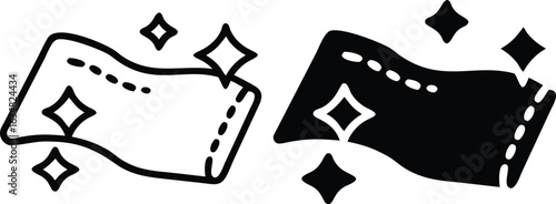 Cleaning Cloth Icon Set Black White Outline Silhouette Vector Sparkle Illustration