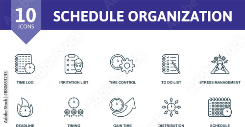 Amusement Park Line Banner Web Icon Set Vector Illustration, Roller Coaster Ferris Wheel Carousel Horse Ticket Booth Ice Cream Circus Tent Acrobatic Act Log Flume