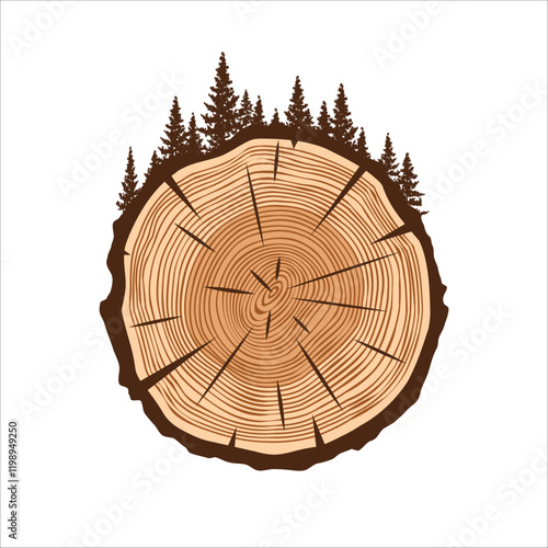 Wood log stack and trees silhouette vector illustration isolated on white background
