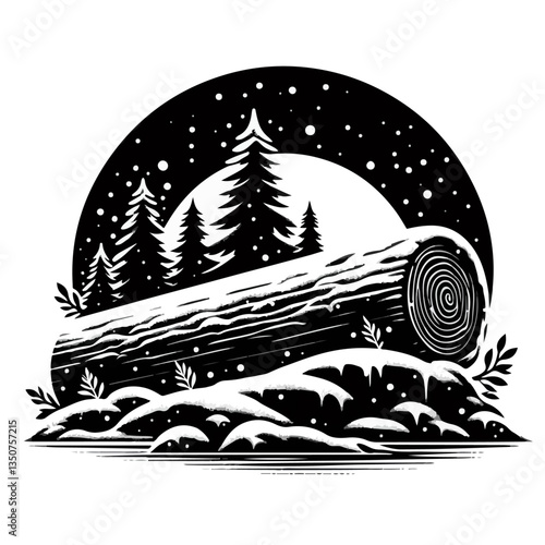 Illustrated black and white log cut section on white background with transparency