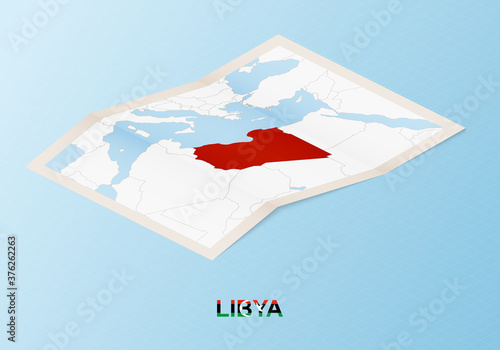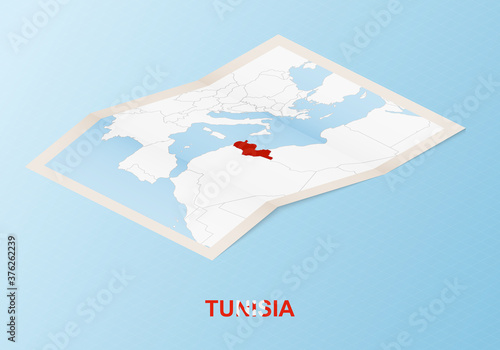 Folded paper map of Tunisia with neighboring countries in isometric style.