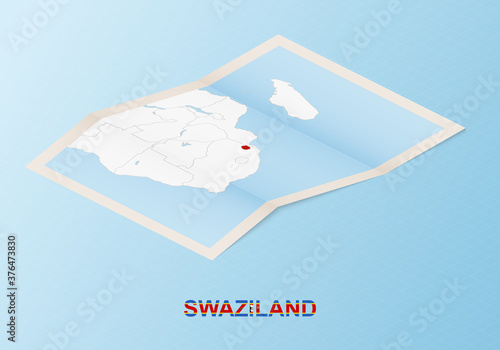 Folded paper map of Swaziland with neighboring countries in isometric style.