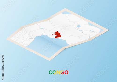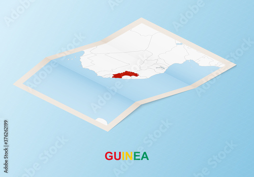 Folded paper map of Guinea with neighboring countries in isometric style.