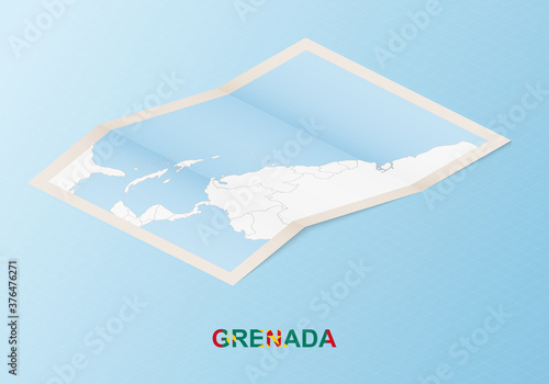 Folded paper map of Grenada with neighboring countries in isometric style.