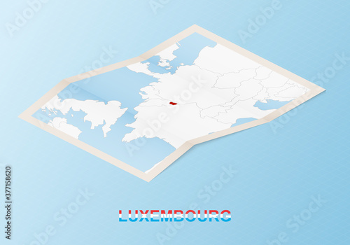 Folded paper map of Luxembourg with neighboring countries in isometric style.