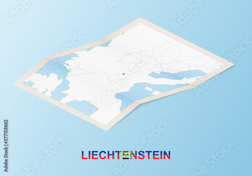 Folded paper map of Liechtenstein with neighboring countries in isometric style.