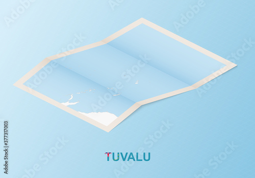 Folded paper map of Tuvalu with neighboring countries in isometric style.
