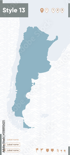 Argentina - map with water, national borders and neighboring countries. Shape map.